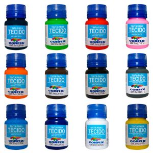 Possui opções que vão bem além das tradicionais, como a tinta metálica e a tinta aquarela para tecido, além da tinta fluorescente. Legal, não é?